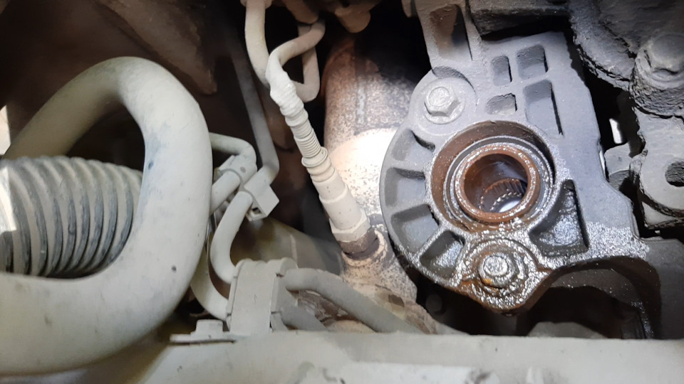 Обнаруживаем, что втулка раздаточной коробки слетела со своего посадочного места.