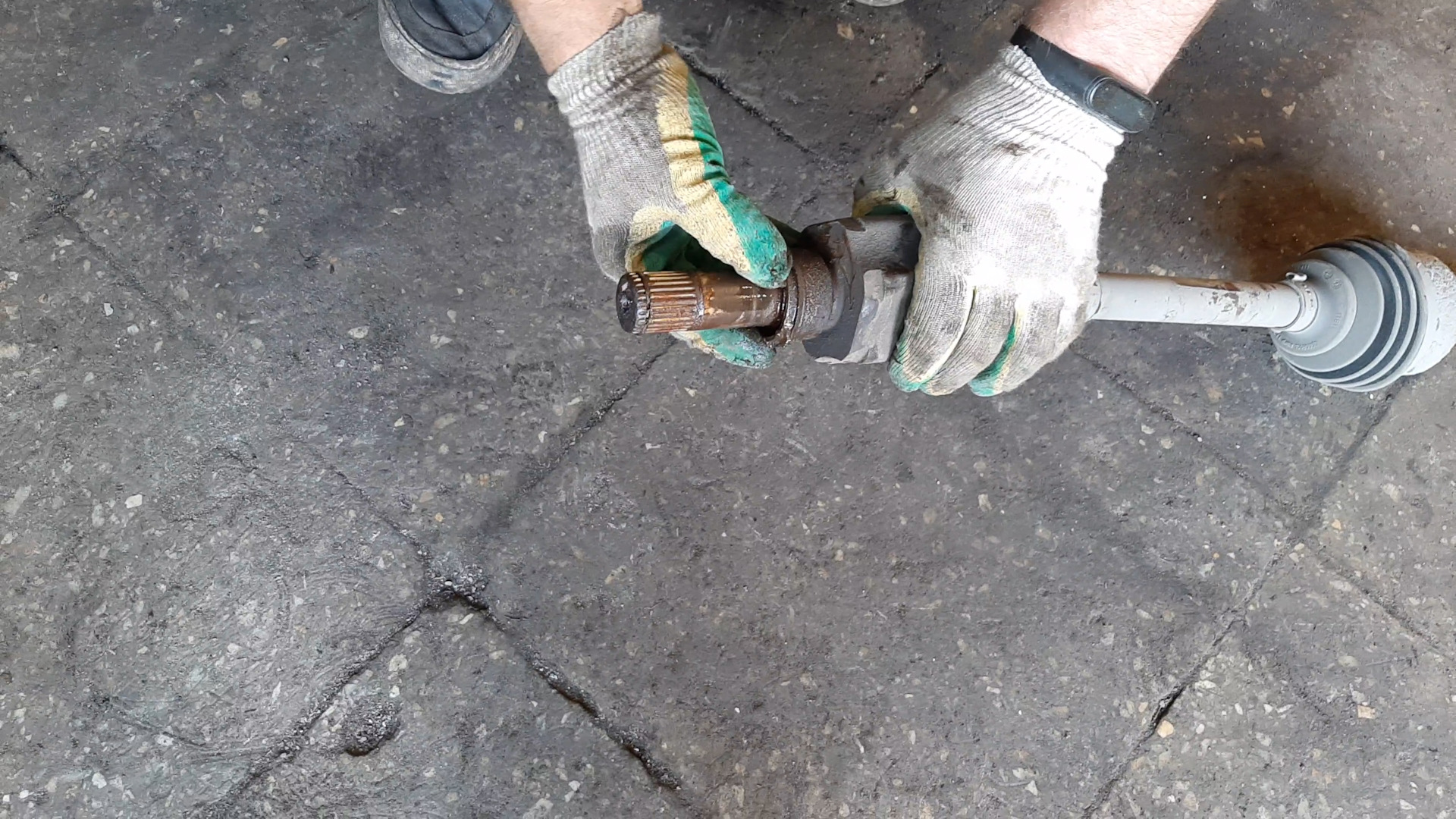 Маленькая резиновая деталь сместилась на миллиметр, но, как мы уже говорили, в машине не бывает мелочей. Это вызвало попадание влаги, и вал ШРУСА уже покрылся желтым налетом ржавчины.
