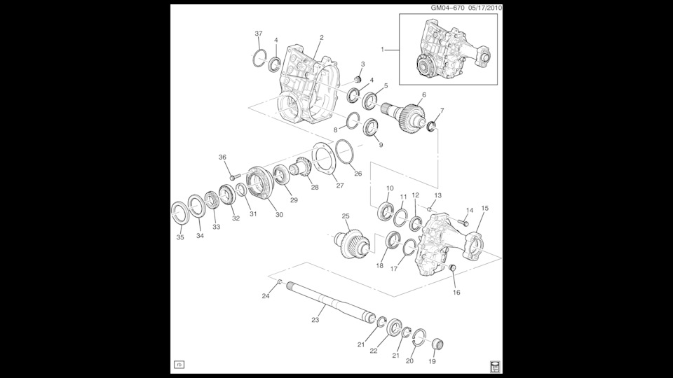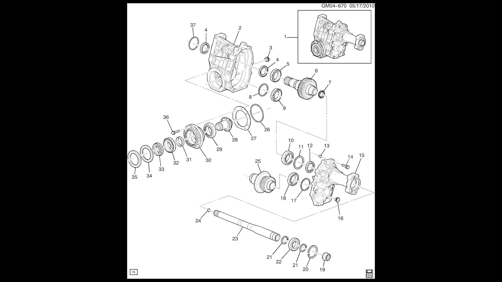 На этой схеме видны требующие замены детали, которые нам удалось извлечь, не разбирая корпус раздатки.