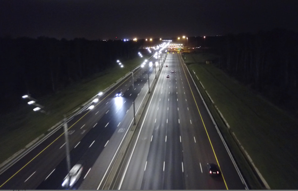 Освещение на скоростной дороге предусмотрено в местах, где требуется повышенное внимание водителя: на пересечениях с другими дорогами, сложных поворотах, пунктах взимания платы, а также при интенсивности движения 20 тыс. автомобилей в сутки и более. Эти требования прописаны в ГОСТ Р 52766-2007 «Дороги автомобильные общего пользования. Элементы обустройства. Общие требования».