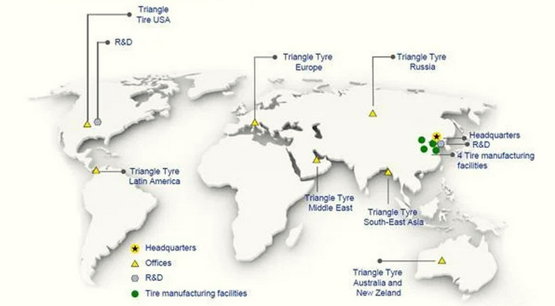 Triangle Group основана в 1976 году. В 2000 году компания получила первый титул «Знаменитого китайского бренда» в шинной отрасли. Сегодня она занимает 14 место в рейтинге мировых производителей шин и поставляет свою продукцию в 160 стран, имея представительства почти на всех континентах. У компании 4 завода, а также научно-исследовательские центры в США и Китае.