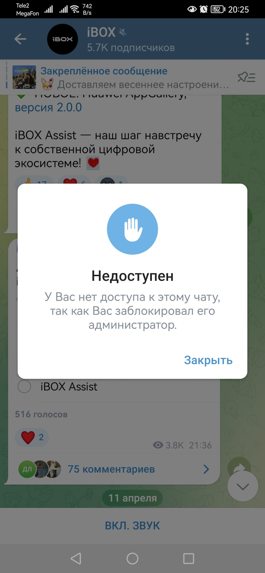 Бренд iBOX не имеет официального чата в Telegram, и потому мы не можем комментировать вашу информацию о блокировках.