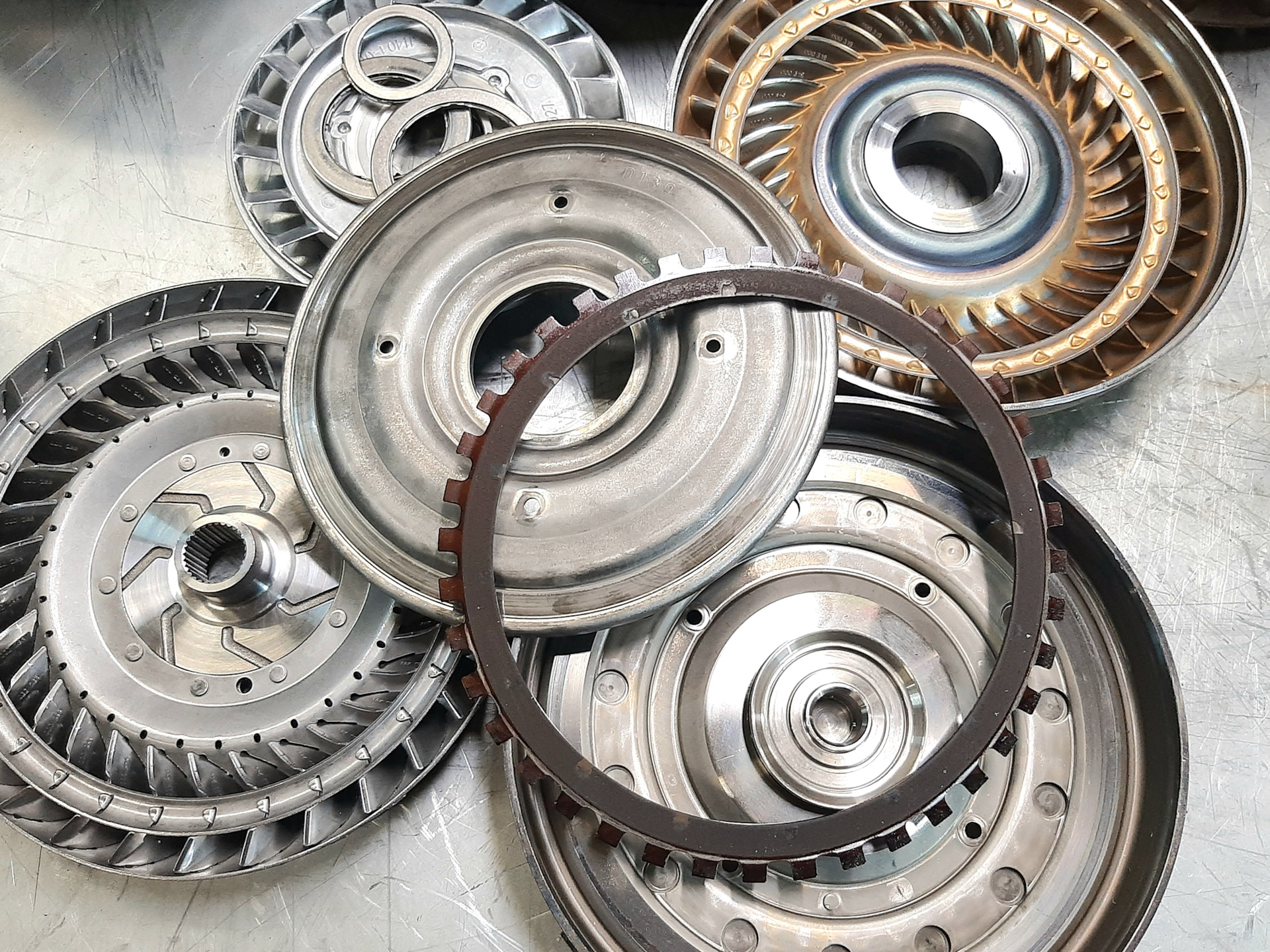 Дефектовка трансмиссии выявила – плохое состояние трансмиссионной жидкости, образование металлической стружки, сильное повреждение втулки вала тормозного барабана в корпусе, выработку втулки масляного насоса, ослабление/выгибание стопорного кольца корзины Е2, износ тормозных лент, фрикционных дисков, поршней, тефлоновых колец, межкорпусной прокладки, сальников/уплотнителей, загрязнение масляного фильтра. В гидроблок попала металлическая стружка, начали залипать/заклинивать клапаны регулировки давления, вышли из строя соленоид блокировки гидротрансформатора и линейного давления. В гидротрансформаторе подгорел и износился фрикционный диск. Согласовали стоимость ремонта с клиентом, приступили к ремонту.