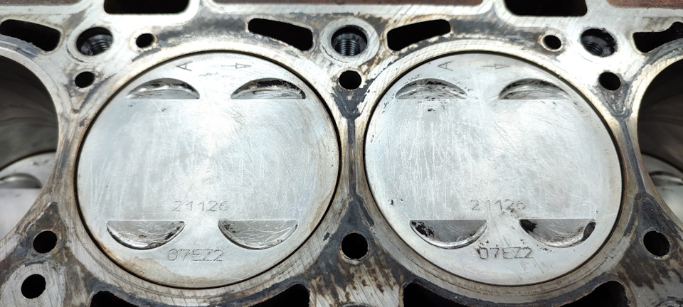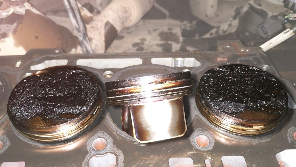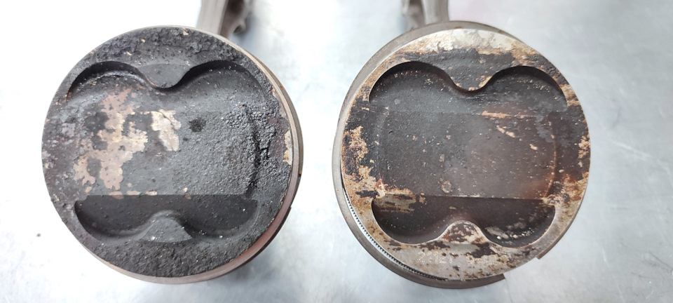 Нагар на безвтыковых поршнях только начинает нарастать. Со временем он может превратить их во втыковые.