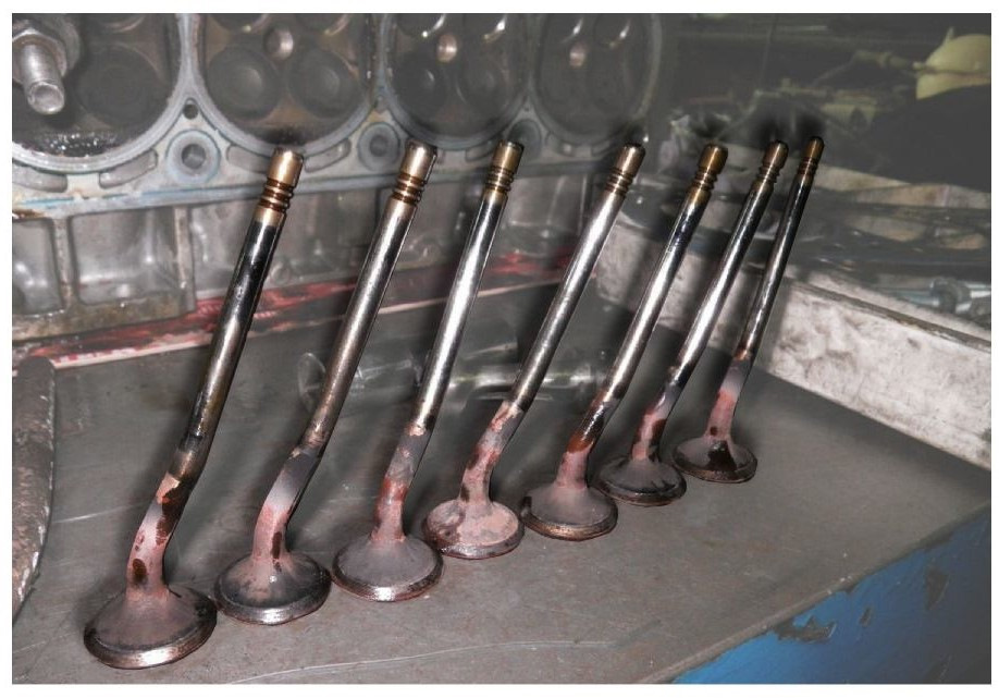 Клапаны с наросшим нагаром выступают над уровнем камеры сгорания значительно выше.
