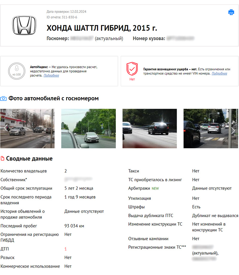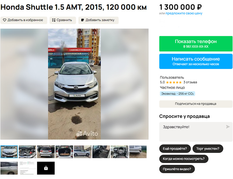 Меня заинтересовал Honda Shuttle за 1,3 млн рублей. Не самая низкая стоимость на рынке. Ради интереса заказал проверку авто.