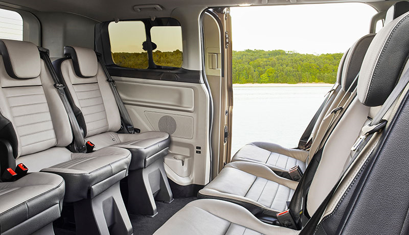 Салон Tourneo Custom просторный и легко вмещает до 9 пассажиров. Кроме этого, богатое оснащение авто делает его безопасным и комфортным для семейного передвижения.