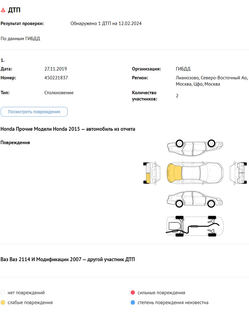 Для семейного передвижения я бы выбрал другую машину – ту, которая не участвовала в ДТП. Не лишним было бы проверить владельца авто через специальный сервис: действителен ли его паспорт, есть ли у него неоплаченные задолженности и многое другое. С примером отчета можно ознакомиться по ссылке.