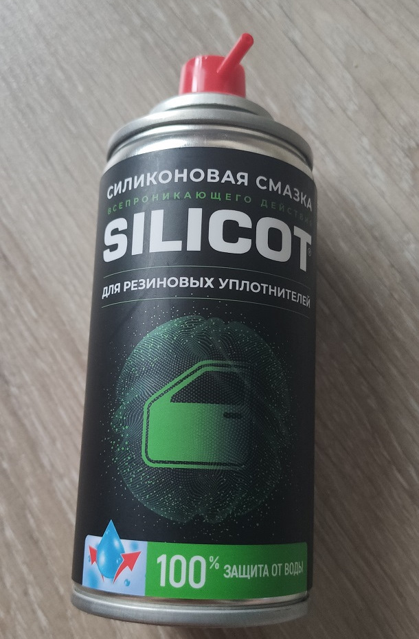 В этот раз подготовился и взял уже Смазка силиконовая Silicot SPRAY для резиновых уплотнителей (арт. 2706 от ВМПАвто)
