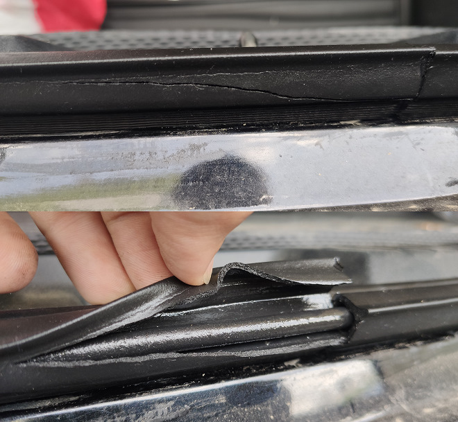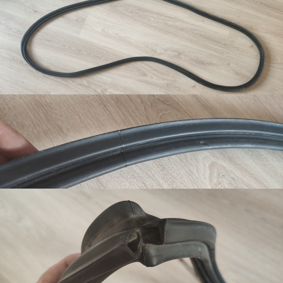 Здесь уплотнитель уже полностью целый и тут нам потребуется нож — делаем небольшой надрез по сварному шву, в который потом будем вставлять кондуктор.