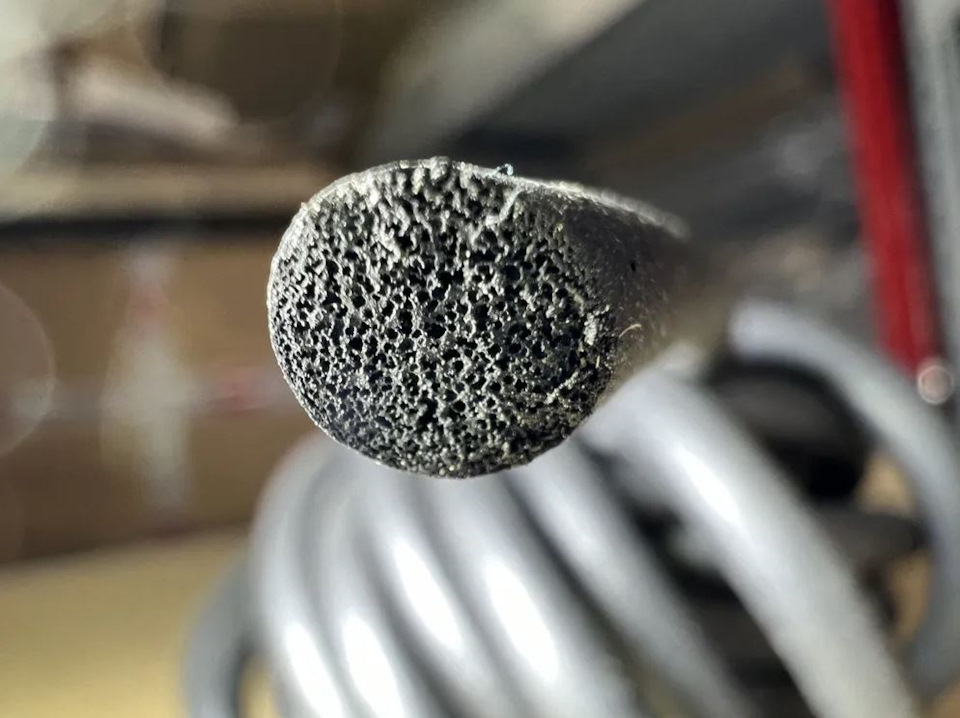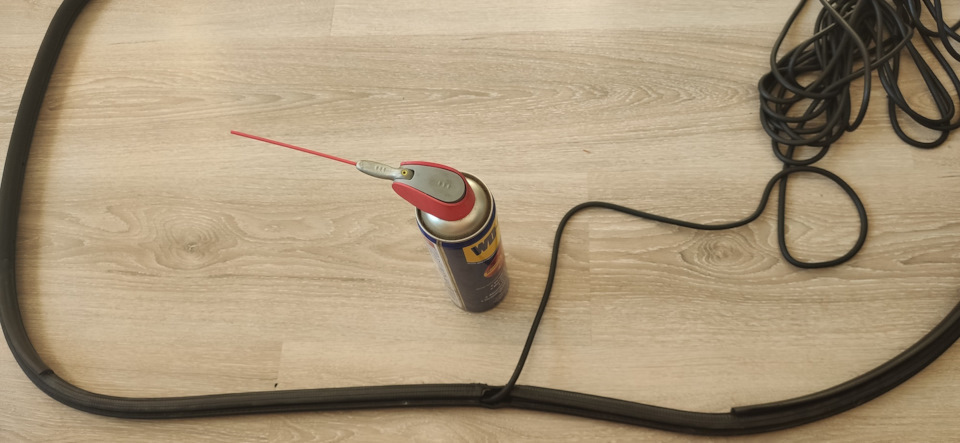 Т.к дома в этот момент была только WD40, то использовал ее как смазку)) Сначала пропихнул проволоку, как она начала выходить — обрезал, примотал и периодически пропшикивая в начале и через отверстия протянул шнур.