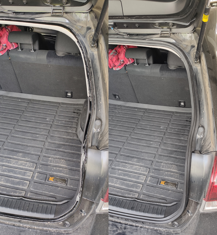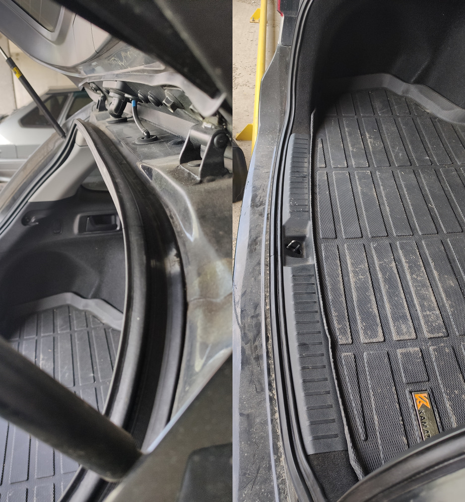 Тут совет такой: если на боковых дверях все можно сделать в одного, то на двери багажника лучше взять второго человека, который будет придерживать резинку и стараться держать ее в круглом состоянии и обильно пройти силиконовой смазкой — процесс пойдет еще лучше чем на задних дверях.