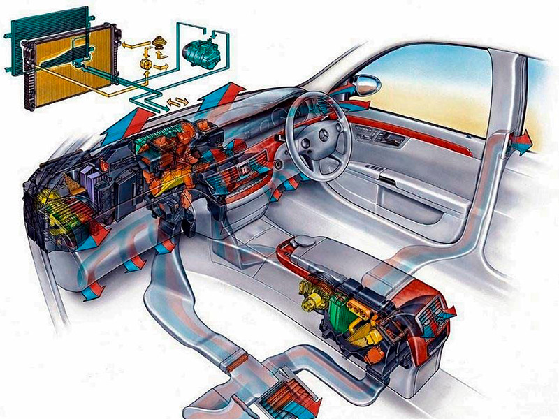 Кроме того, для обогрева салона устанавливали дополнительные радиаторы и вентиляторы, чтобы обеспечить эффективное распределение тепла. Эта система отопления впервые была применена на автомобилях компании General Motors и в последующие годы нашла широкое распространение по всему миру.