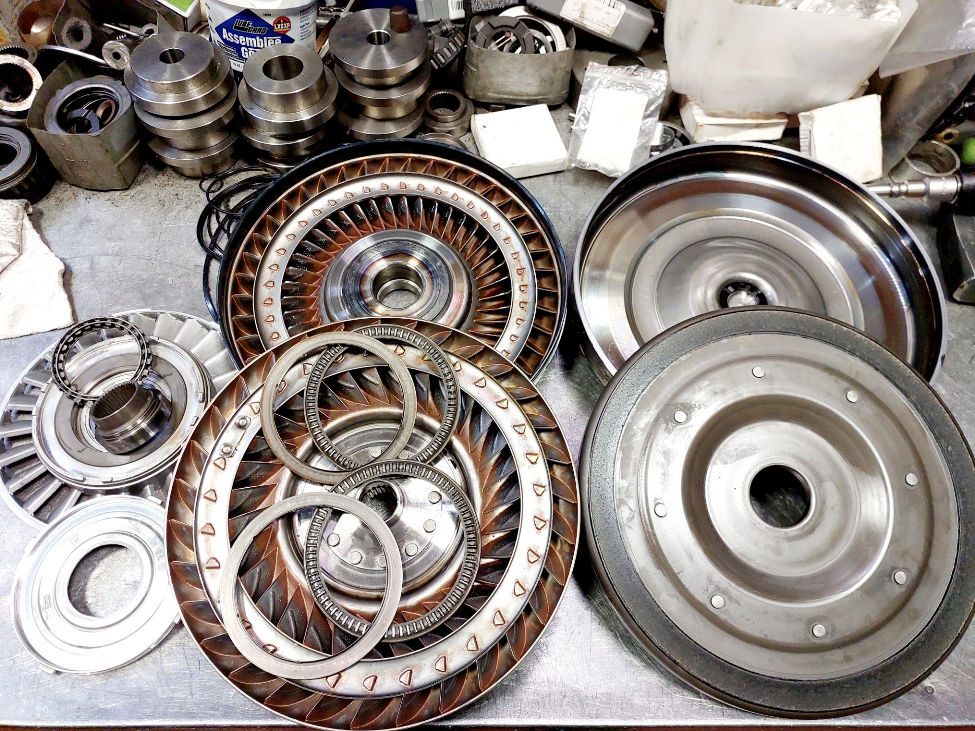 Выполнили мойку деталей, обработку шлифовку/полировку рабочих поверхностей дна корпуса, поршня, заменили фрикционную накладку, отремонтировали обгонную муфту, поменяли промежуточные игольчатые подшипники турбины и реактора.