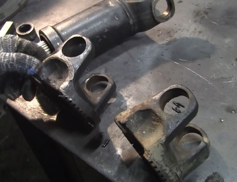 Кстати и крестовина, которую они пытались интегрировать в свои согнутые проушины были, мягко говоря, сомнительного качества. Чашка как запчасть уже имела люфт относительно крестовины и её размер меньше нормативного на 0,2 мм. Чашка не требовала запрессовки — устанавливалась руками! Хорошо, что им не удалось "отремонтировать" вал — он бы далеко не уехал, точно.