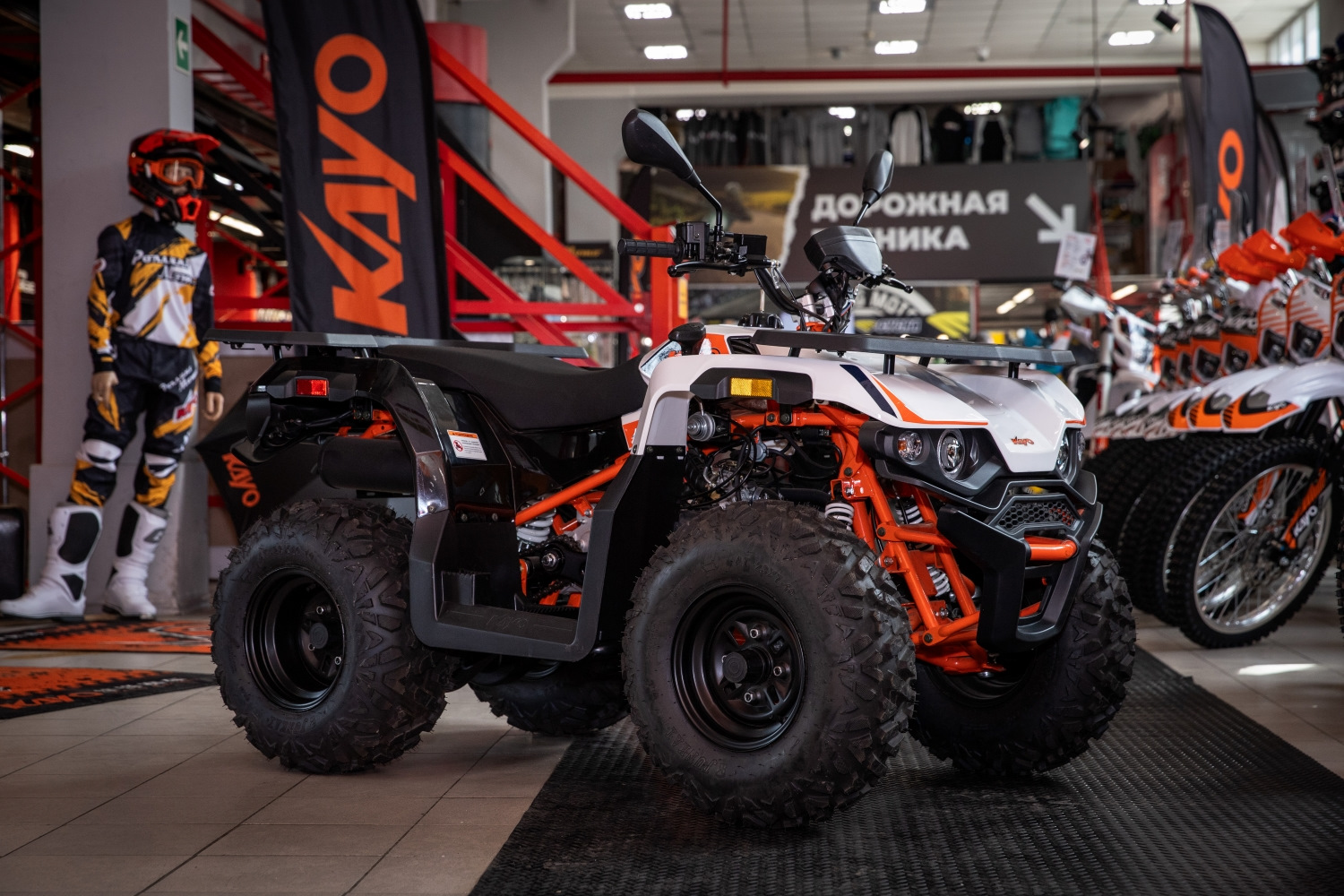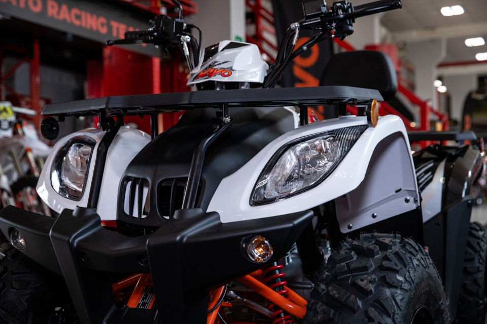 Чем хороши утилитарные квадрициклы, так это их возможностью перевозить грузы – полезная в хозяйстве функция. А для этого здесь предусмотрены металлические багажники с пластиковыми накладками. Они располагаются спереди и сзади. На них можно установить кофр или просто прикрепить вещи удобным способом. А также сзади есть фаркоп для прицепа. Но что еще объединяет квадрициклы KAYO AU180 и AU200 – это простое и недорогое обслуживание. На них установлены надежные двигатели, нет сложной электрики, они неприхотливы к качеству топлива – здесь просто нет такого количества комплектующих, которые нужно было бы часто и дорого обслуживать. Плюс расходники для этих квадрициклов можно купить по доступным ценам. Все это делает эксплуатацию квадриков доступной широкому кругу пользователей. Эти квадрициклы KAYO более компактные, чем дорогие аналоги, занимают немного места в гараже, при желании легко транспортируются в небольшом прицепе или пикапе. Или при наличии прав вы можете просто доехать на них до дачи, деревни или места отдыха сами – ведь у этих мотовездеходов есть ПТС.