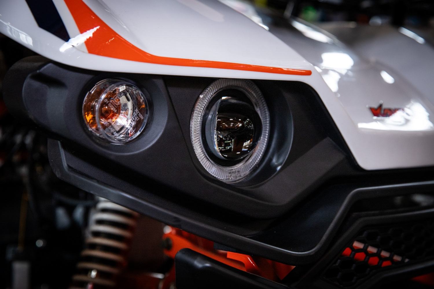 AU180 оснащен обновленной приборной панелью. Здесь установлен симпатичный экран с красивым лаконичным дизайном и приятной подсветкой. Все четко и информативно, отображаются все нужные водителю данные. Рама квадрициклов усиленная, изготовленная из хромомолибденового сплава – легкого и прочного, окрашена в оранжевый цвет. Спереди бампер-кенгурятник, который выпирает за пределы колес, – он добавляет безопасности. У квадриков полуторное удобное сиденье эргономичной формы для водителя и пассажира. У AU180 квадрицикла посадка повыше. У AU200 высота по седлу 760 мм, у 180-го – 805 мм. Модели оснащены широкими подножками с антискользящими зубастыми металлическими накладками. У AU180 предусмотрены подножки не только для водителя, но и для пассажира.