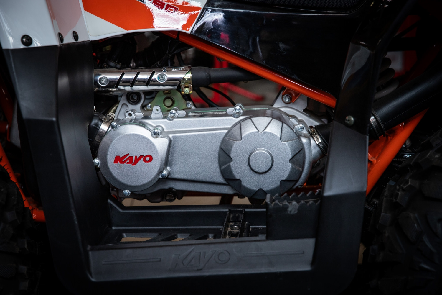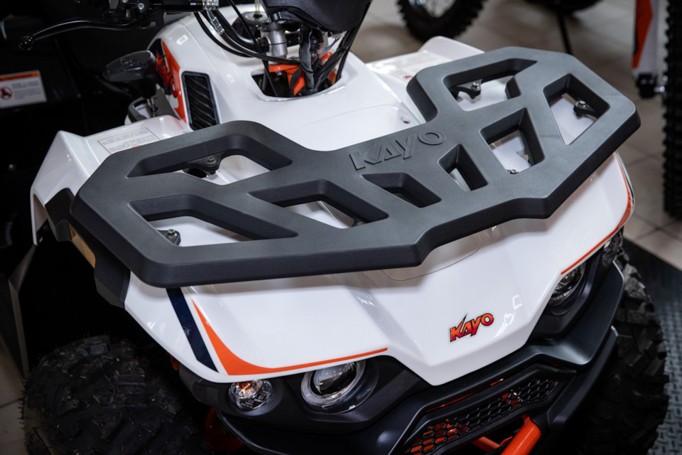 Для комфорта второго номера KAYO AU200 оснащен еще и спинкой для пассажира. Так что берите с собой ребенка или вторую половинку и вперед за приключениями. За плавный ход отвечает передняя независимая подвеска – два удлиненных А-образных рычага с двумя креплениями. AU200 оснащен передними подвесками длиной 260 мм, задним моноамортизатором длиной 310 мм. А вот у обновленной модели AU180 подвески побольше: передние амортизаторы длиной 310 мм . Задний моноамортизатор 280 мм с усиленной пружиной имеет настройки преднатяга пружины. Так что на этом квадрицикле будет еще проще проезжать по бугристому грунту и другим сложным участкам. Кроме того, у AU180 побольше клиренс, что тоже будет плюсом для внедорожных приключений. С помощью настройки подвесок можно сделать ход квадрициклов мягче или жестче, как вам будет удобнее.