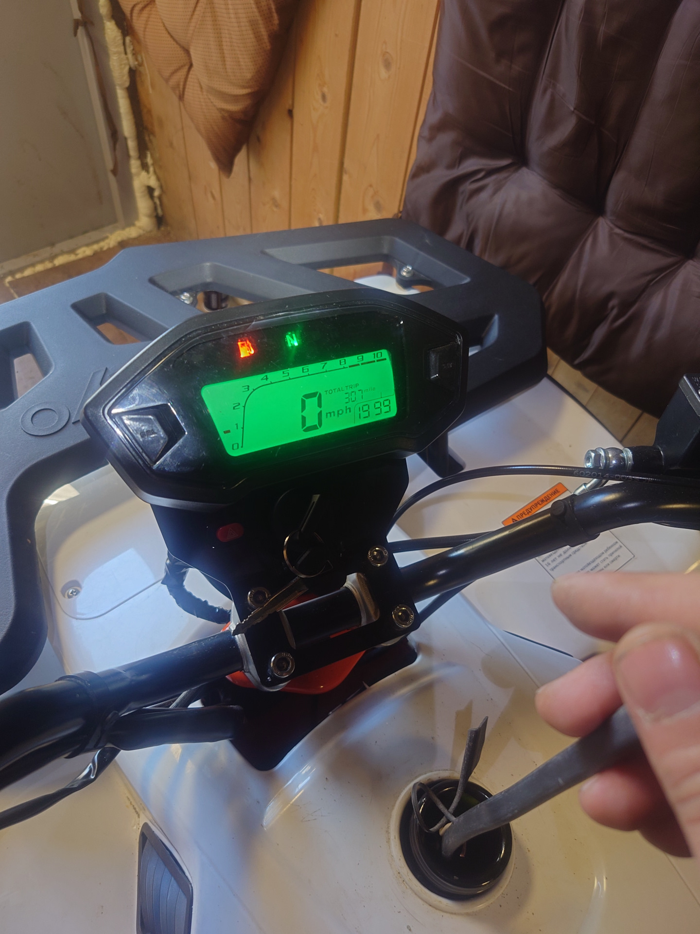Не благодарное дело пришлось разобрать руль, передний пластик, снять бак.