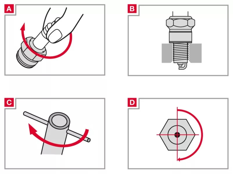 Информация как правило указана в ньютон-метрах и градусах доворота, при отсутствии динамометрического ключа. Резьбу свечи не рекомендуется смазывать смазкой, так как это может привести к ее перетяжке. Некоторые производители указывают несколько значений, для повторной установки свечей зажигания. Но как правило, свеча зажигания после демонтажа должна быть заменена на новую.