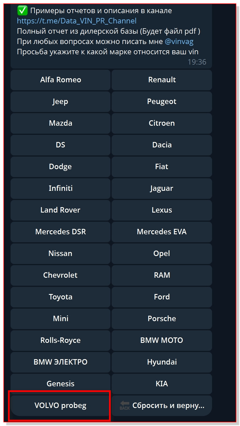 — шлем vin — история другие марки — кнопка VOLVO probeg