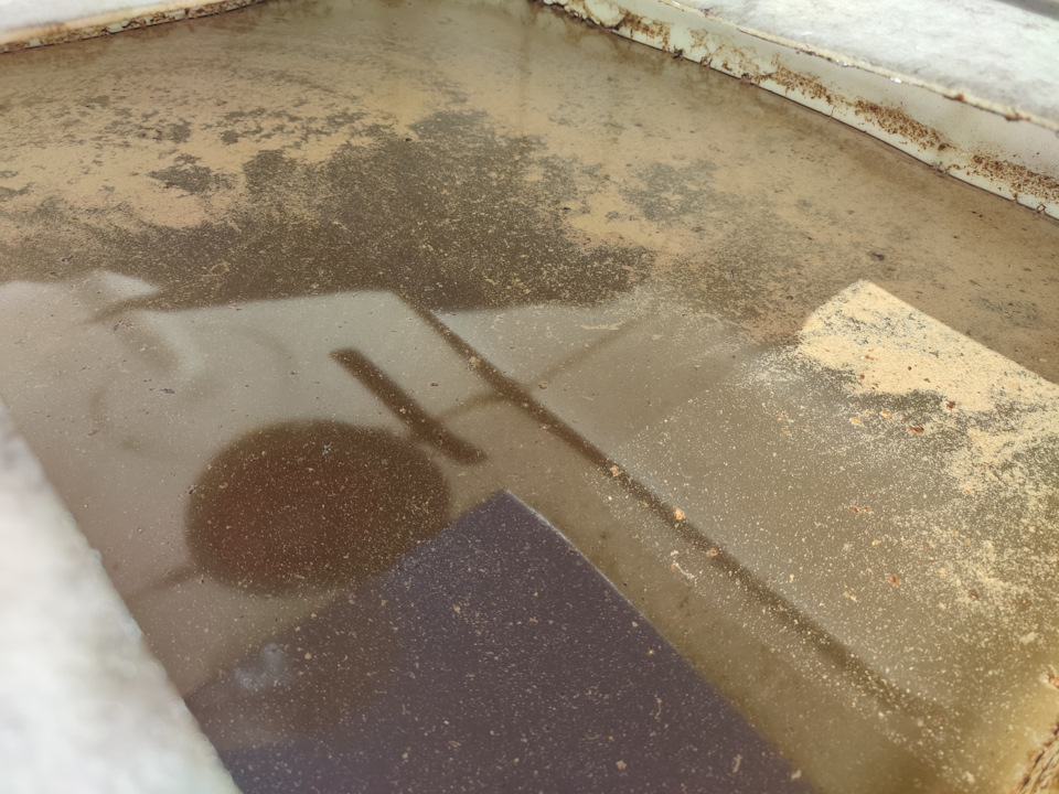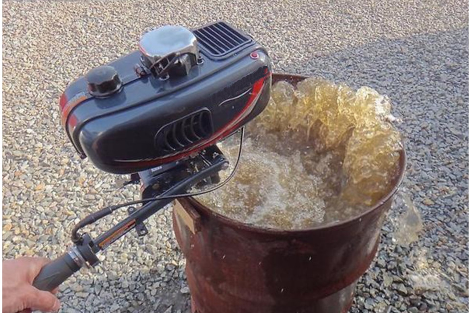 Такой стала чистейшая вода в кубе спустя несколько часов испытаний. И это только от одного мотора. Когда видишь такое, невольно начинаешь задумываться об экологии.