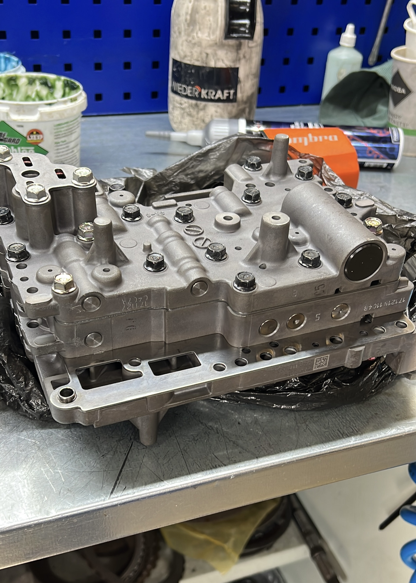Гидроблок был промыт, перебран, заменили комплект демпферов Sonnax, соленоид блокировки, соленоид линейного давления, соленоид Underdrive и соленоид 3-5-R. А в гидротрансформаторе мы заменили фрикционную накладку и все уплотнения.