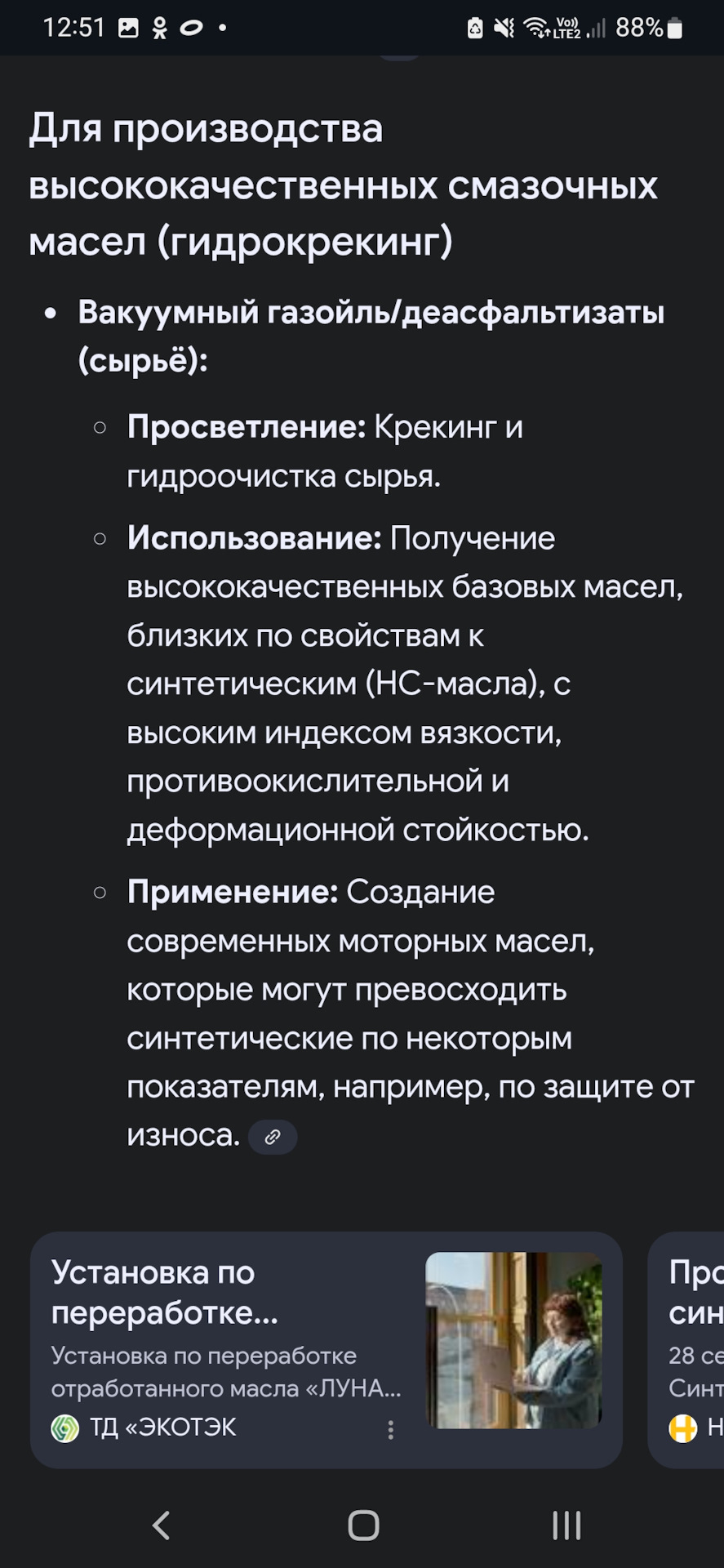 Я в Лукойле 17 лет отпахал …)))методом гидрокрекинга делают масла БЛИЗКИЕ по качеству и свойствам к синтетическим маслам. Но некоторые сорта могут быть выше синтетики по характеристикам.