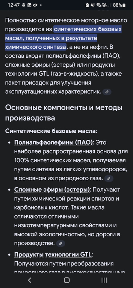 Да, минеральное масло 3 группы называют синтетикой, а вот минеральное масло 2 группы изготовленное тем-же методом гидрокрэкинга что и 3гр, но не дотягивающее по индексу вязкости до 3 гр, называют полусинтетикой. Настоящая синтетика это ПАО, 4 группа, изготовленное из этилена методом синтеза. GTL же хоть и из газа, нефтятого газа, и относится к минеральным маслам 3 группы.