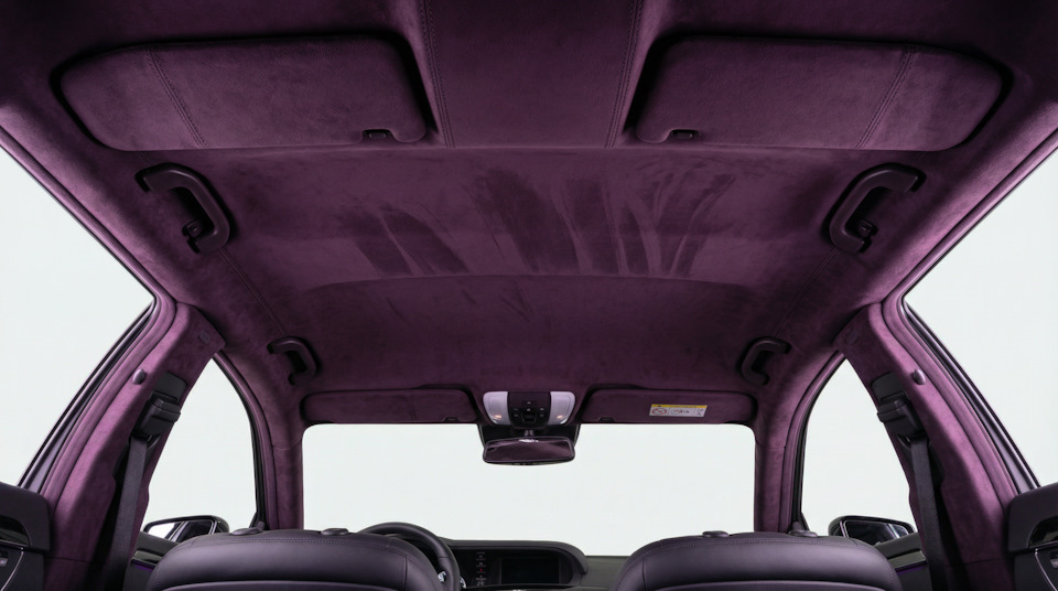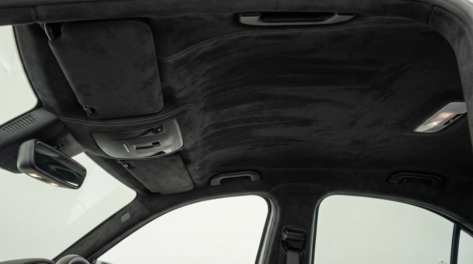 Перетяжка стоек крыши в алькантару — те самые вертикальные элементы между окнами тоже должны быть в черной алькантаре. Иначе бежевые стойки будут резко контрастировать с космическим потолком, разрушая магию. Стойки перетягиваются поштучно (5-8 тысяч за штуку), и это критично для гармоничного образа.