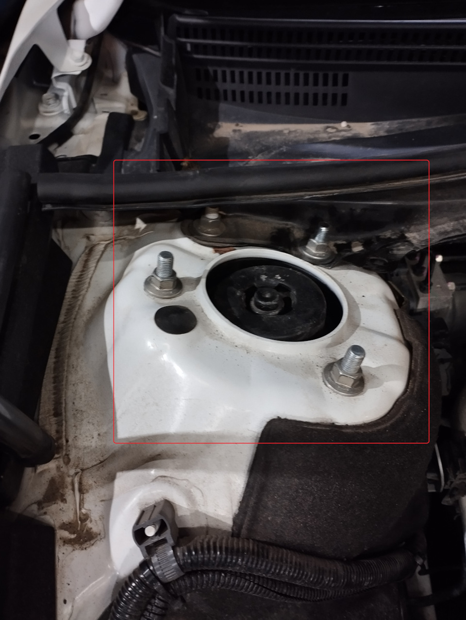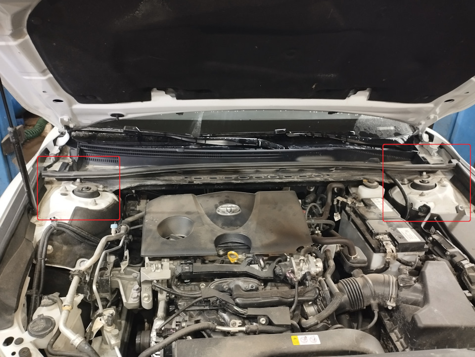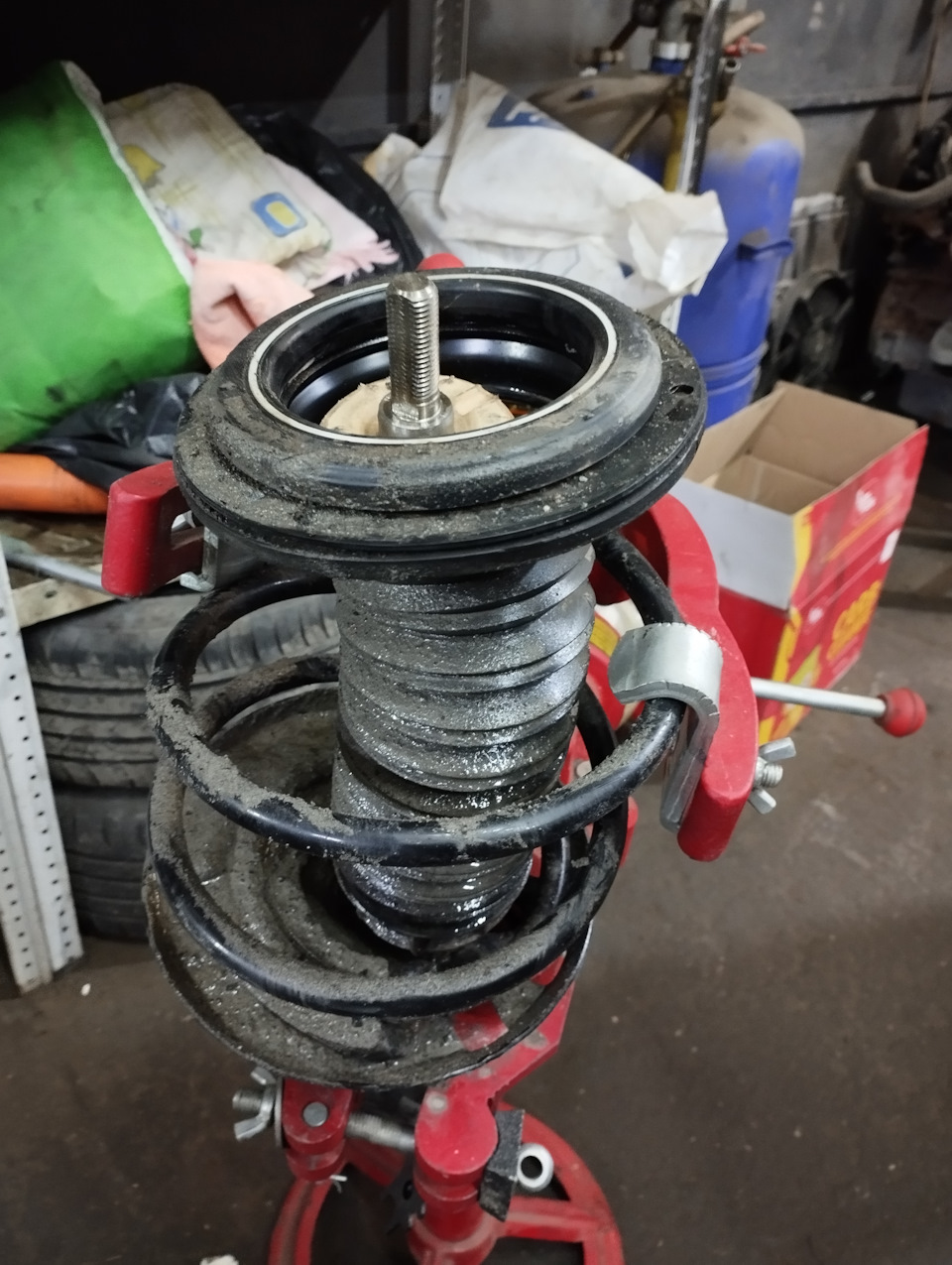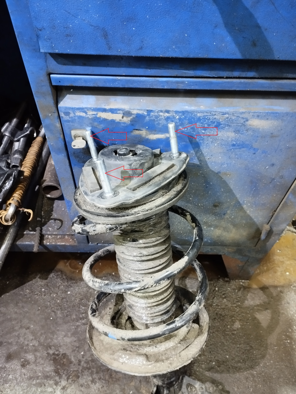 Доступ к передним опорам стоек свободный, откручиваем гайки крепления опоры стойки к кузову