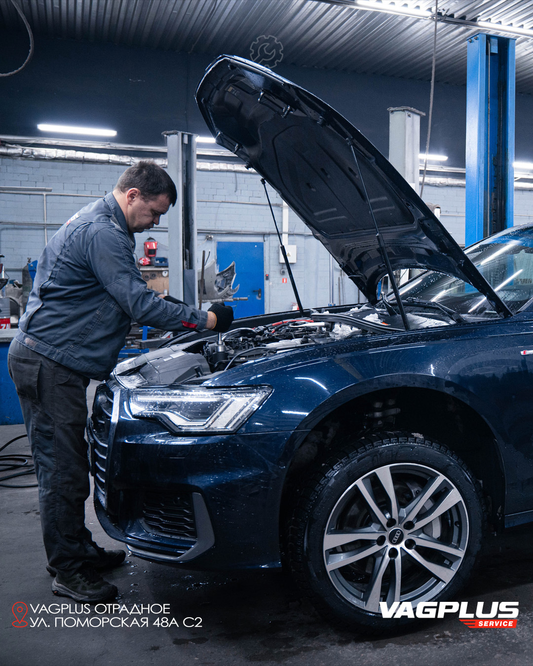 Этот Audi A6 C8 только прибыл из-за границы — и прямиком приехал к нам в VAGPLUS Отрадное на комплексное обслуживание, чтобы сразу привести автомобиль в идеальное техническое состояние и дальше ездить спокойно 🚀