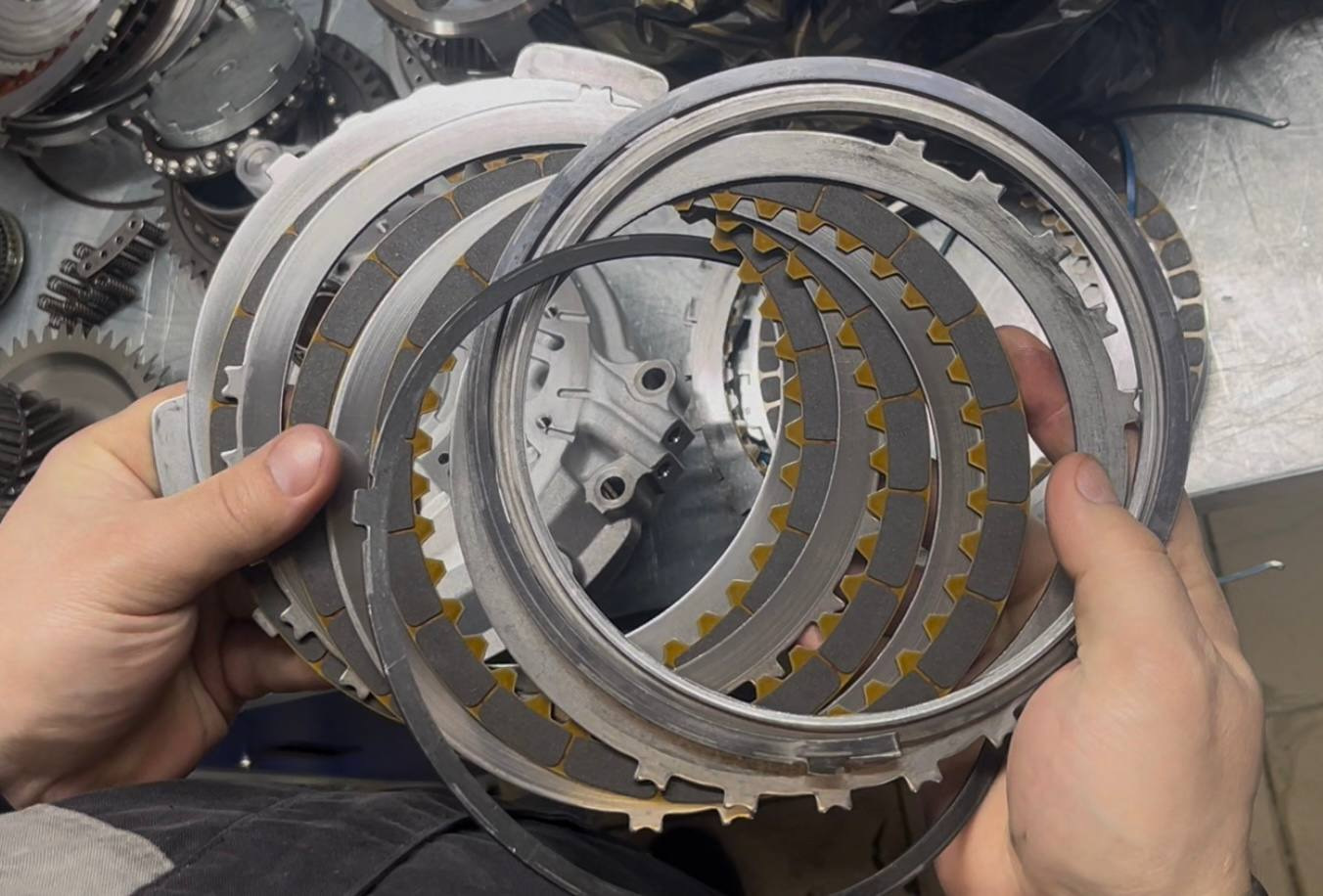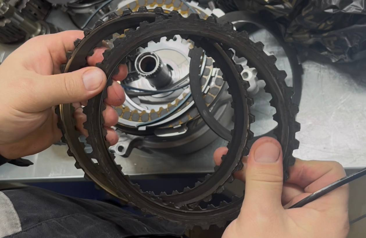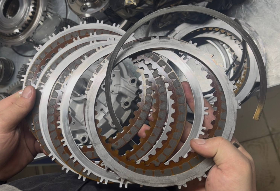 Дефектовка выявила крайне удручающее состояние фрикционных пакетов. Один из пакетов сварился, диски не разжимаются: