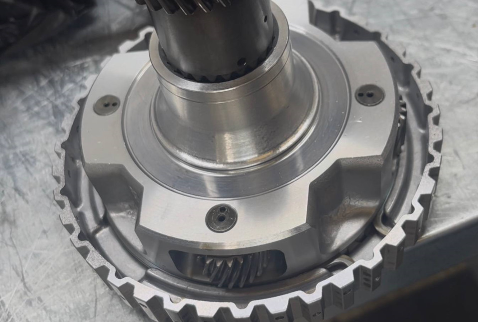 Автомобиль прибыл в наш Техцентр на эвакуаторе с жалобой на посторонний звук в трансмиссии, резкие удары при переключении, а также посторонние загрязнения в поддоне. Последний факт говорил о том, что подшипник пакета Underdrive скорее всего приказал долго жить.