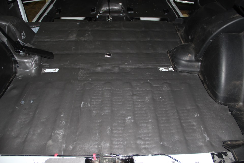 Полы и багажник, т.е. весь низ автомобиля, включая задние арки, проклеен вибродемпфирующим материалом Шумофф М4, порядка 60 листов (27*37см)