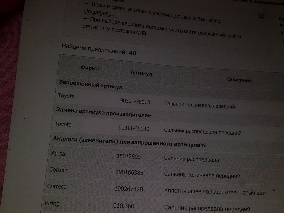 - Сальник коленвала передний Toyota