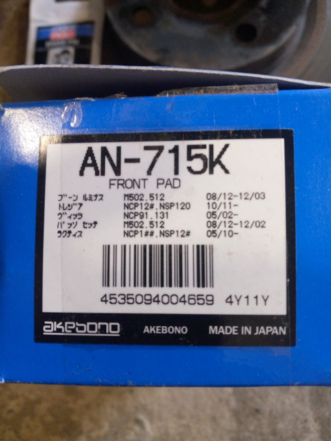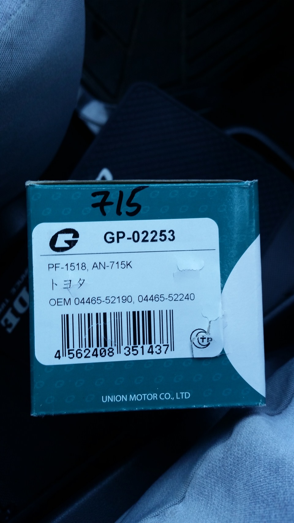 - Колодки тормозные дисковые передн TOYOTA: YARIS 05-