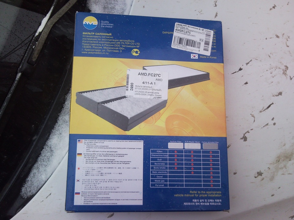 Фильтр Салонный Угольный Elantra(Xd) 00-06 Matrix