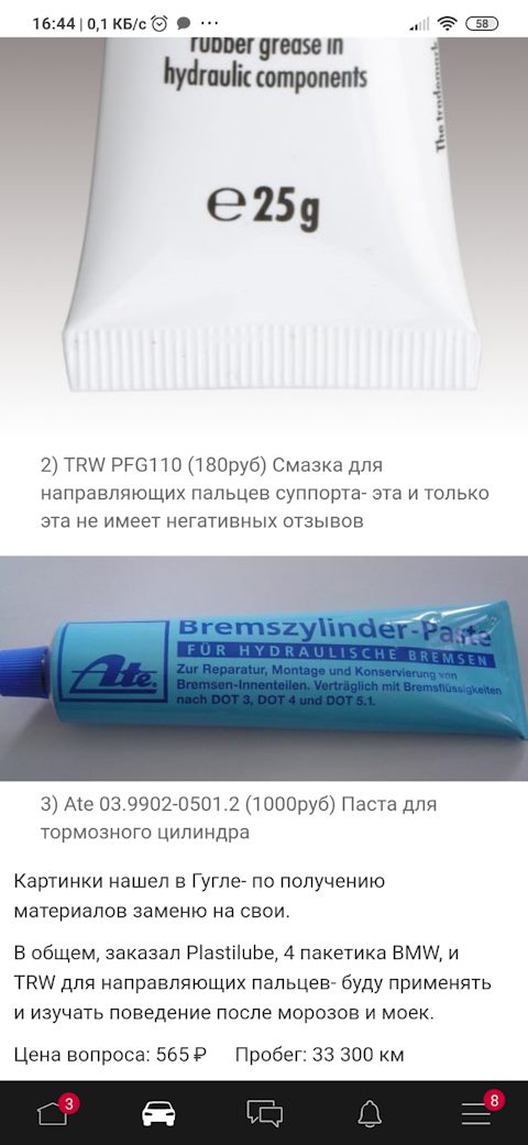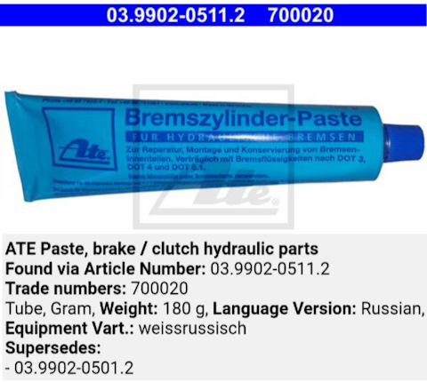 Паста, части торм. гидросист. / гидравл. привод упр. сцепл.