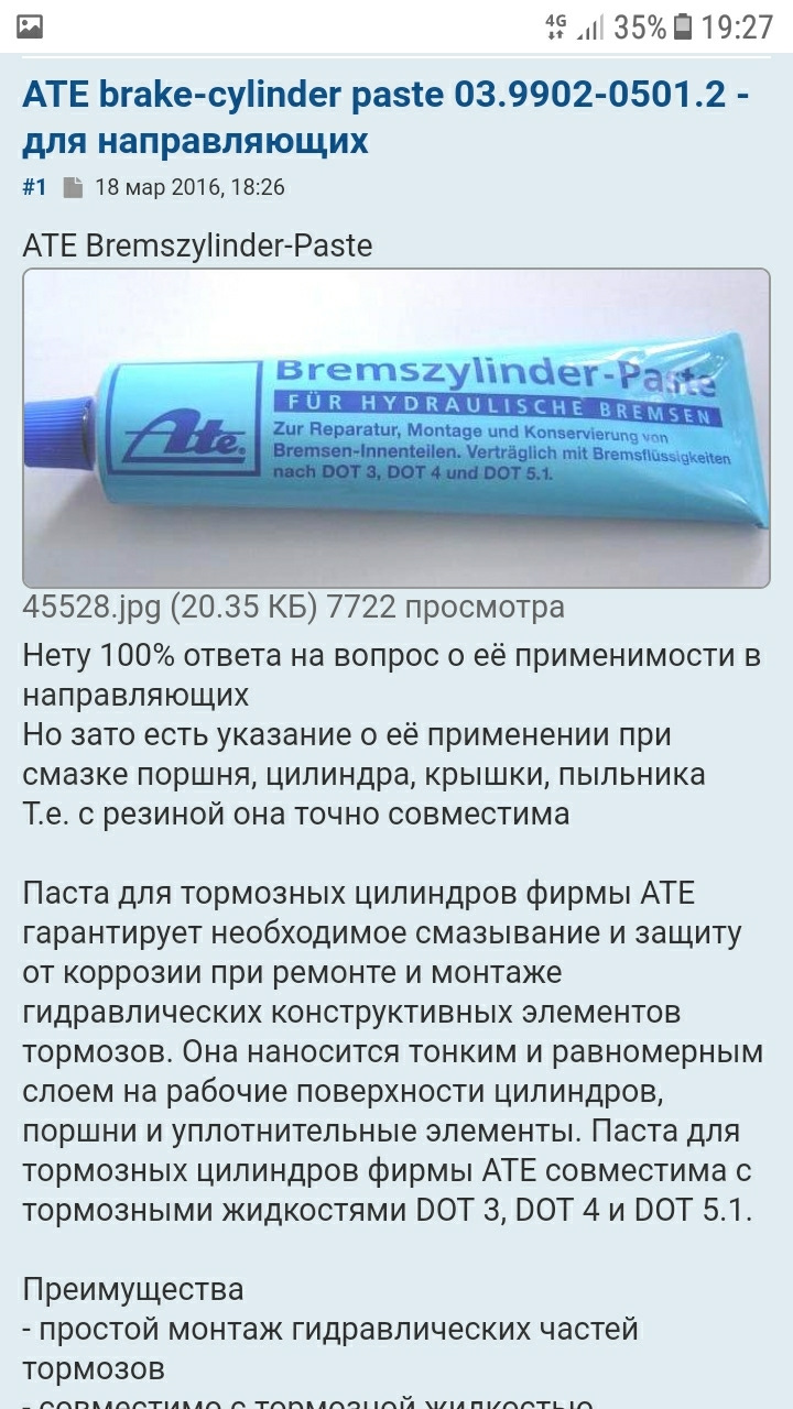 - Паста, части торм. гидросист. / гидравл. привод упр. сцепл.