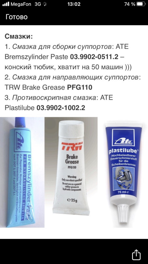 - Смазка для поршней тормозных суппортов
