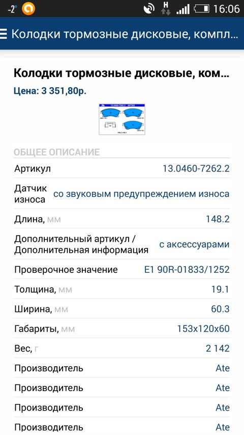 - Комплект тормозных колодок, дисковый тормоз