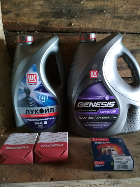 Покупка масла и свечи зажигания