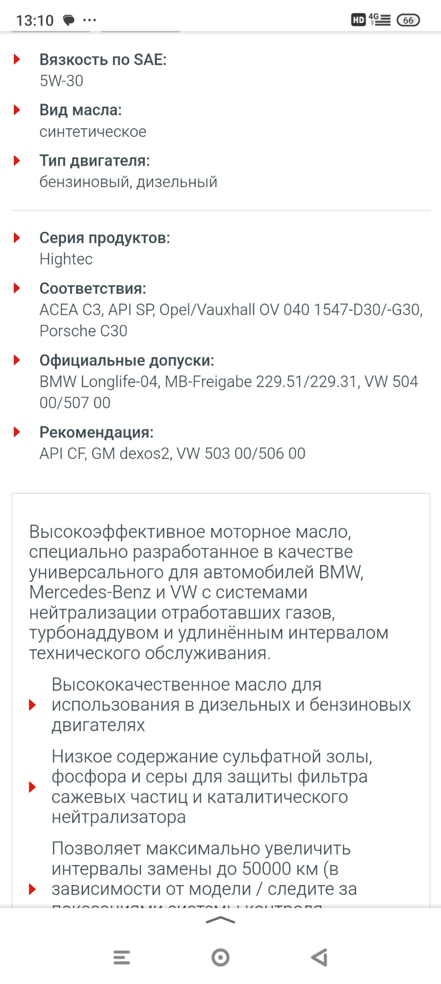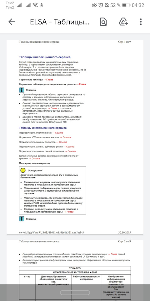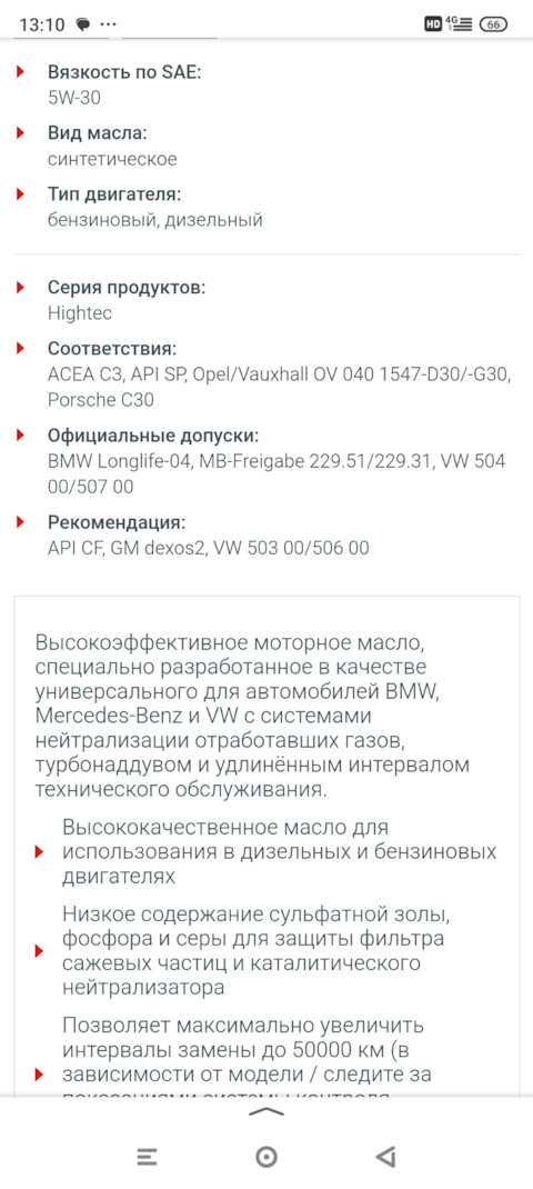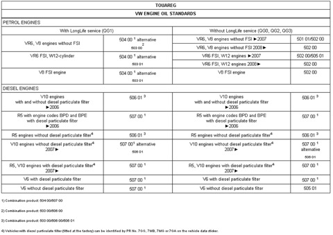 § 119. Допуски моторного масла для Volkswagen Touareg!