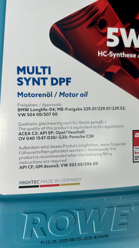 Замена масла на 5w40