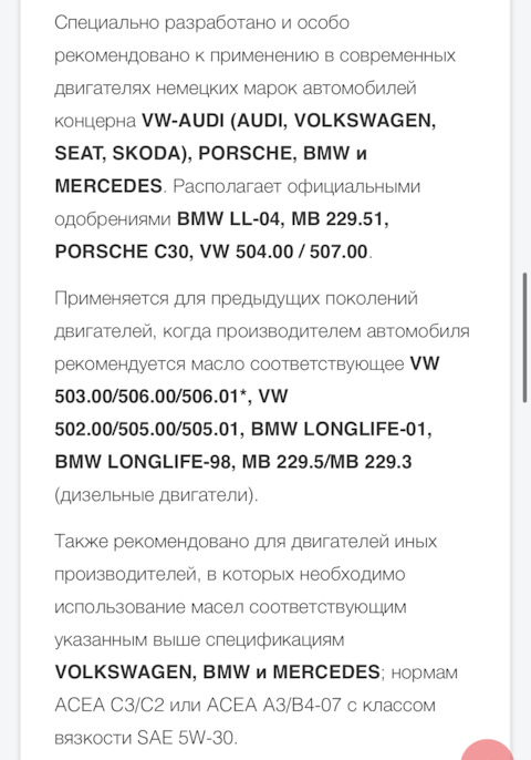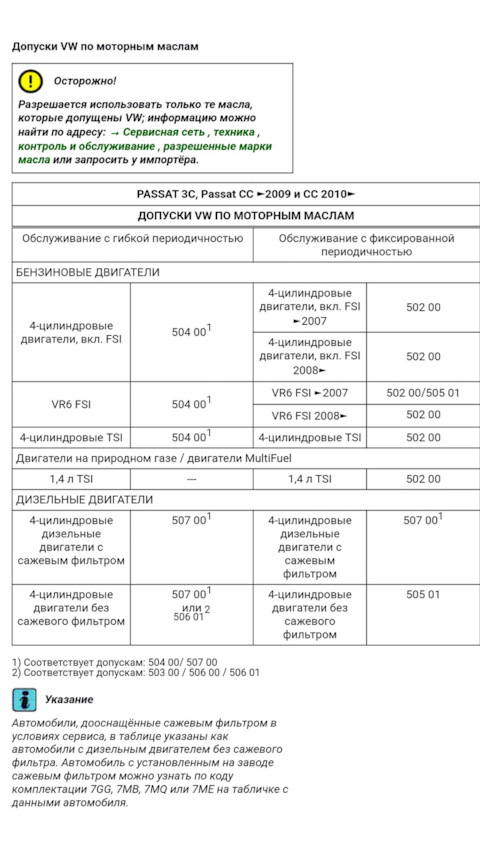 # 6 — Допуски масел Volkswagen Group (инфо) + другие допуски!