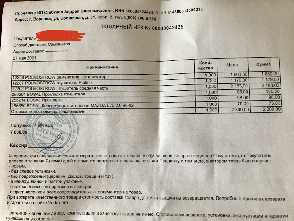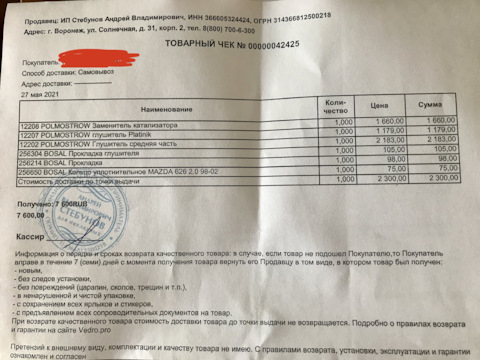 - Прокладка приемной трубы