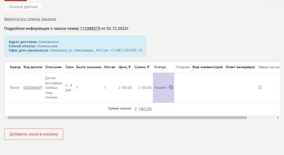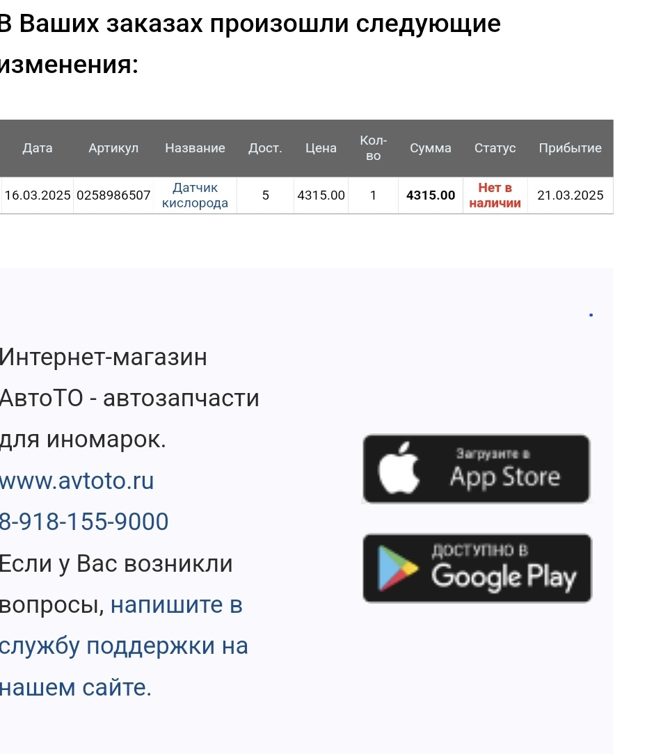 Это актуальный артикул. Ранее деталь имела номер: 0258005730