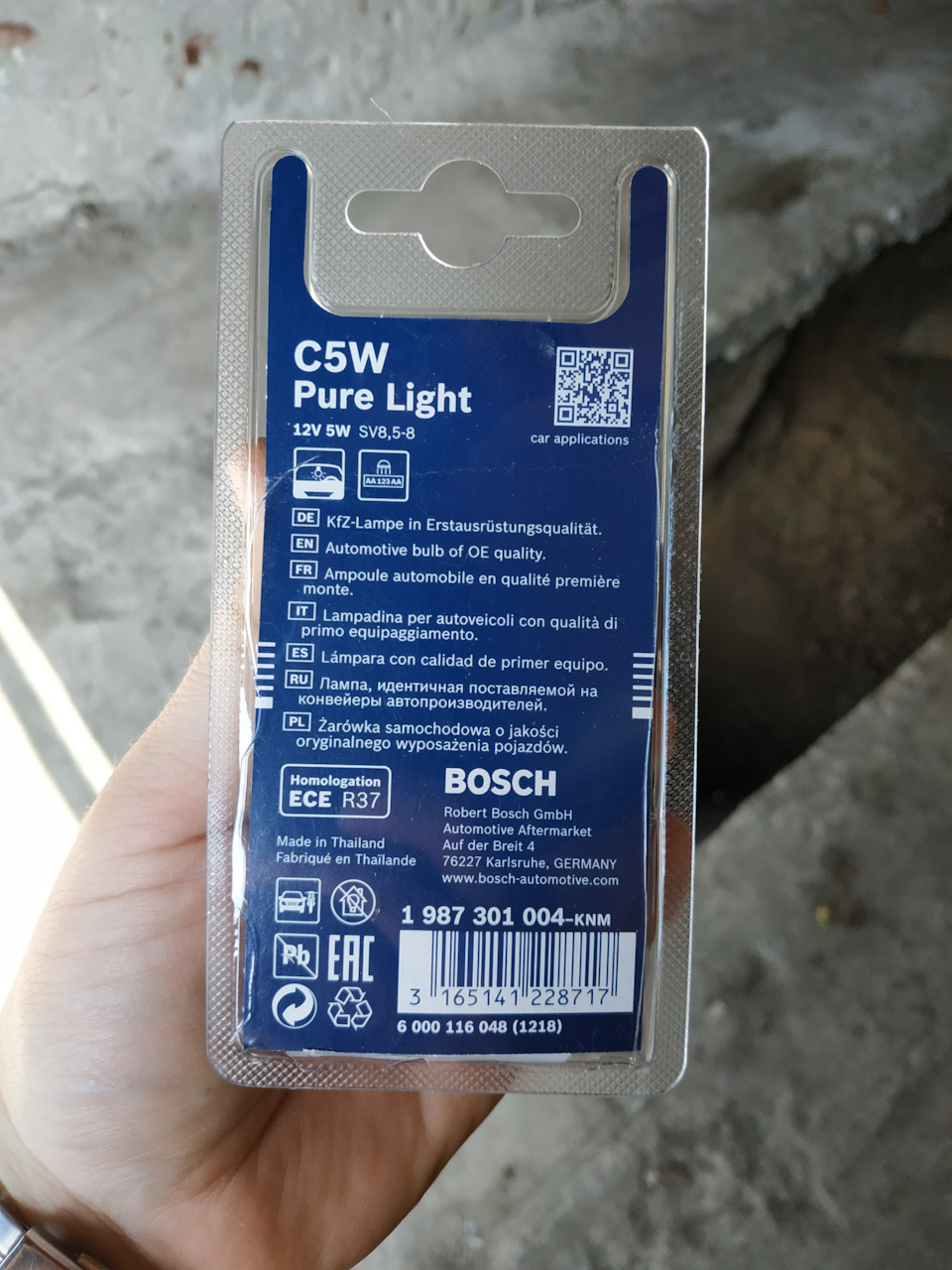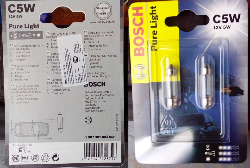 - ЛАМПА 12V 5W C5W PURE LIGHT (БЛИСТЕР 2 ШТ)