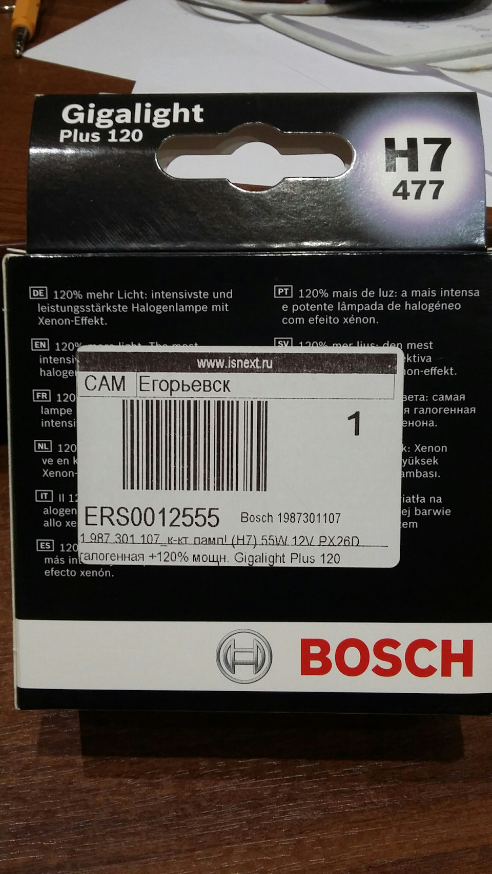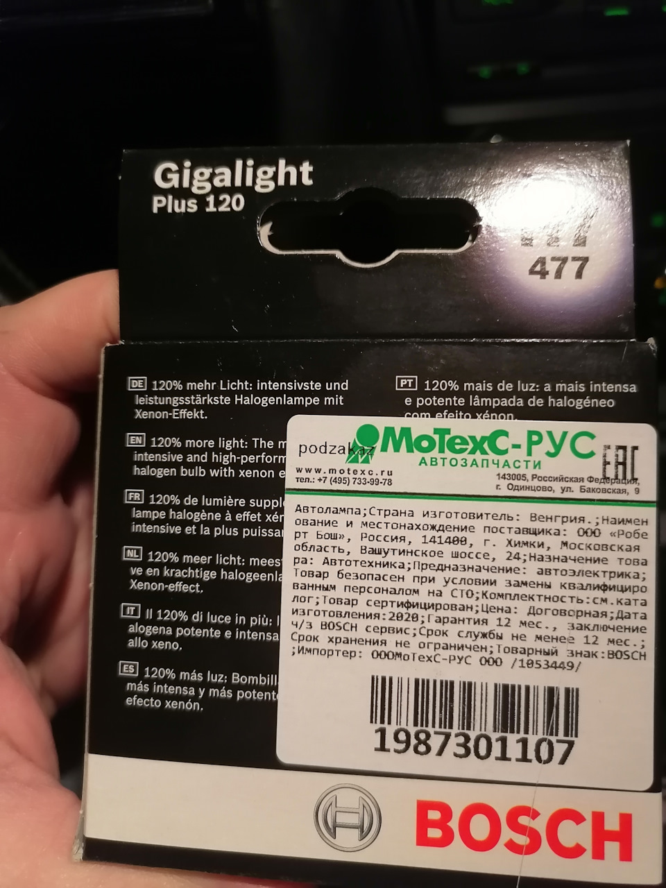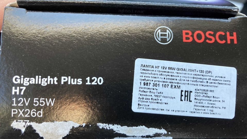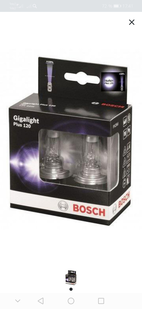 - ЛАМПА 12V 55W H7 GIGALIGHT PLUS 120 (КАРТОН 2 ШТ)